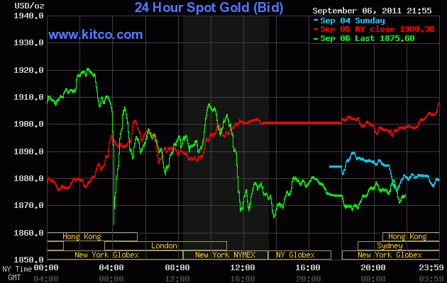 Vàng có thể giảm phiên thứ hai khi nhà đầu tư thực hiện bán chốt lời để bù lỗ cho các thị trường khác sau khi kim loại quý tăng vượt lên mức cao chưa từng thấy trên $1,920/oz. Đồng USD mạnh lên phiên thứ 6 liên tiếp so với rổ 6 đồng tiền mạnh. Đà đi lên của USD được tiếp sức với việc đồng franc Thuỹ sỹ giảm giá mạnh sau khi NHTW Thuỵ Sỹ (SNB) can thiệp vào thị trường tiền tệ giữ cho đồng Franc Thuy Sỹ không tăng vượt trần. Vàng giao ngay lức 8h16 giờ VN (ngày 7/9) đang giao dịch tại mức $1,876/oz, trước đó giá đã giảm xuống mức $1,867.57 đầu giờ. Giá vàng đã lapaj mức kỷ lục $1,921.15 hôm qua. Vàng giao kỳ hạn tháng 12 biến động nhẹ ở mức giá $1,874/oz sau khi chạm mức cao $1,923.70 trên sàn Comex, New York ngày 06/09/11. Động thái của SNB rốt cuộc cũng hỗ trợ “đà tăng giá vàng” vì lượng tài sản an toàn trong tay nhà đầu tư giảm xuống. “ Nhà phân tích James Steel của tập đoàn HSBC Securities USA Ltd. cho biết thêm: “Tuy nhiên, chúng tôi hy vọng giá cao để ngăn lại nhu cầu vàng nữ trang và nhu cầu vật chất phi đầu tư khác và tăng nguồn cung vàng phế liệu. Cổ phiếu rớt sâu có thể dẫn đến việc bán tống vàng nếu nhà đầu tư quyết định huy động thêm vốn.” Đồng franc suy yếu chưa từng thấy so với euro sau quyết định của SNB. Còn chứng khoán Mỹ mở rộng theo đà giảm toàn cầu sau khi mở cửa lại vì quan ngại nợ công EU. Bộ trưởng Đức Wolfgang Schaeuble cho biết Hy Lạp sẽ không nhận được phần cứu trợ tiếp theo nếu mục tiêu chưa đạt được về gói cứu trợ. |